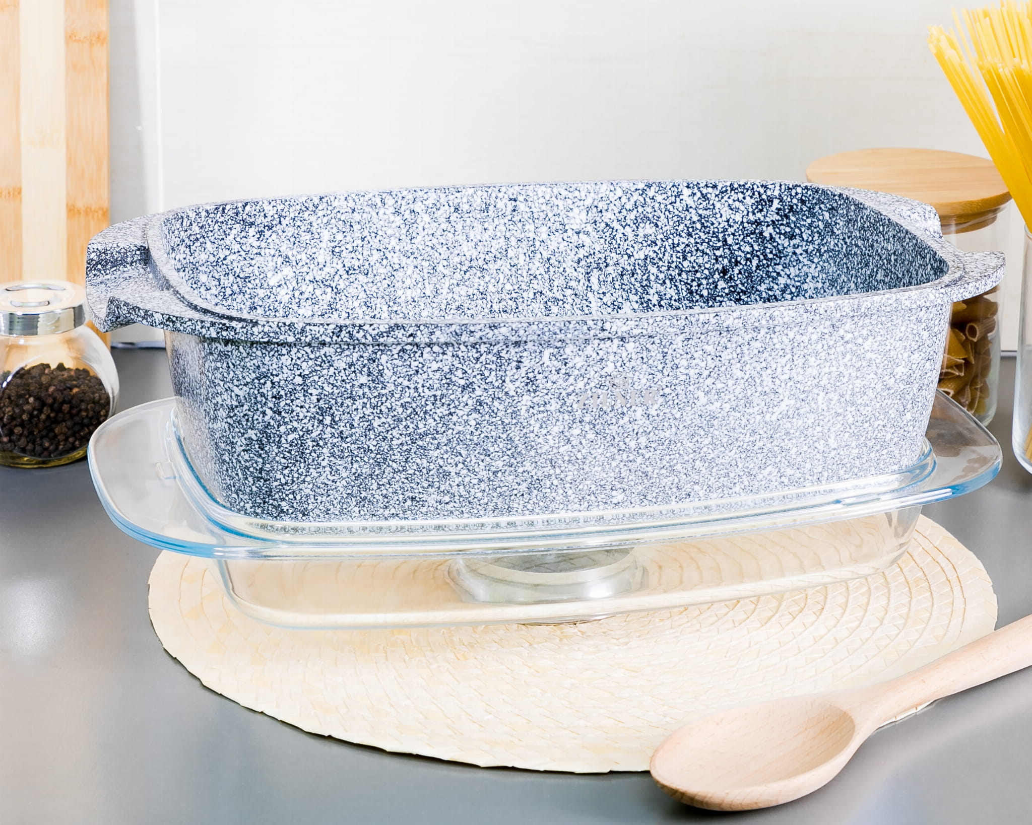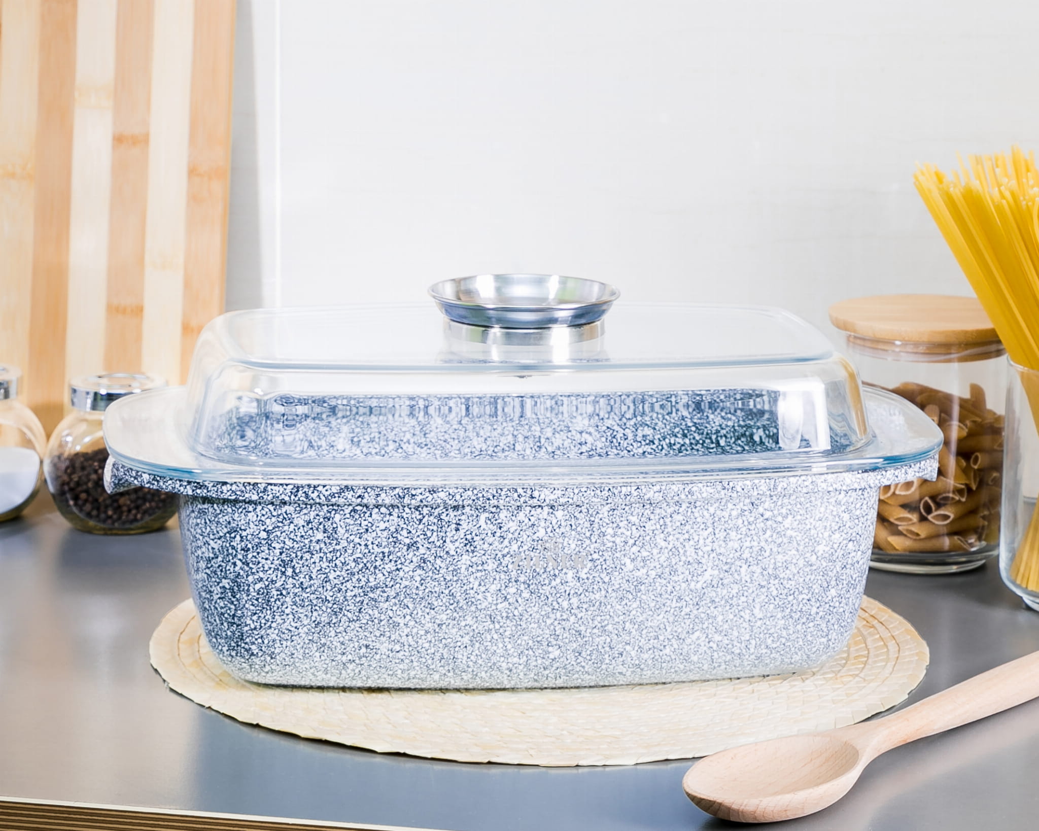 Brytfanna z powłoką marmurową ZILNER ZL-7075 zachwyca nie tylko wszechstronną funkcjonalnością, ale również swoim ekskluzywnym wyglądem. Marmurowa powłoka w modnych odcieniach szarości, nowoczesny prostokątny kształt oraz dbałość o wszelkie detale sprawia, że brytfanna jest prawdziwą ozdobą każdego wnętrza kuchennego. Pozwoli Tobie zaoszczędzić czas, pieniądze i energię, rozpieści smacznymi i zdrowymi daniami, a także zapewni luksusowy wygląd Twojej kuchni.