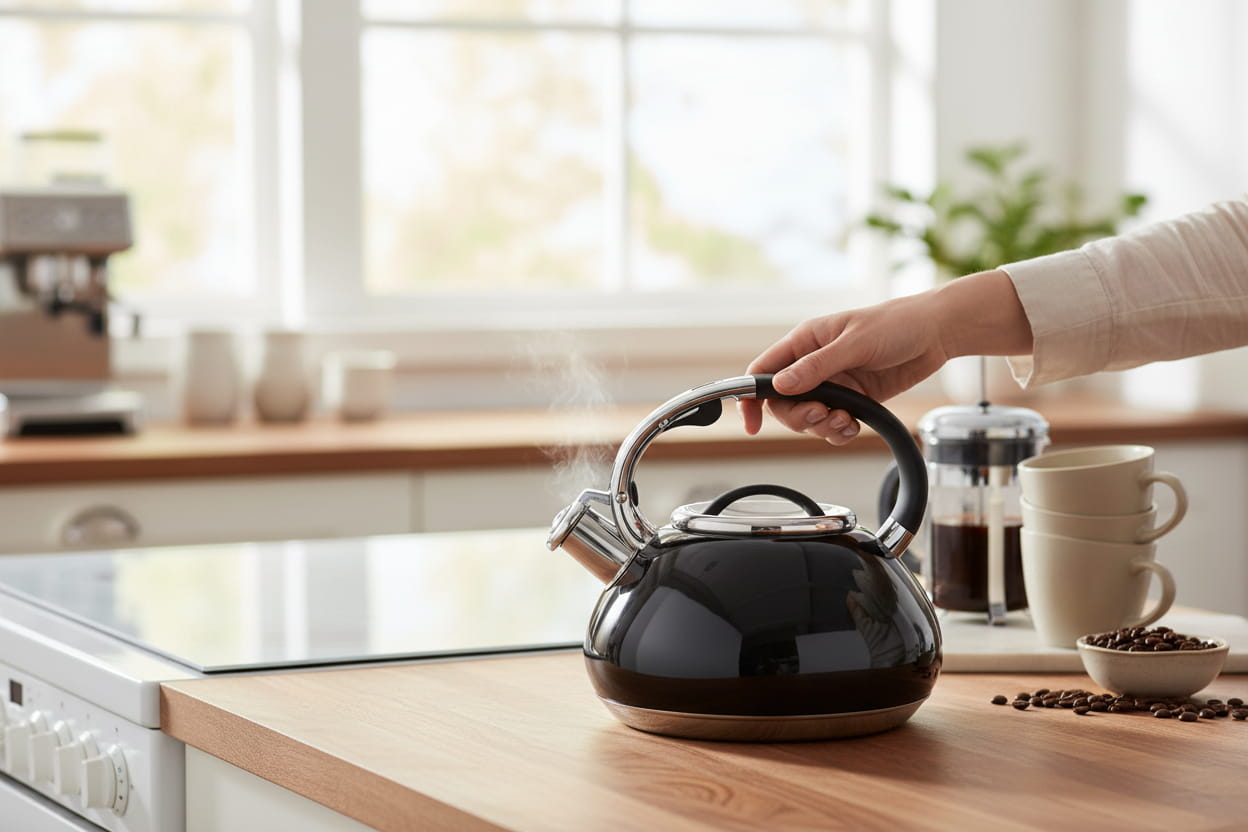 Jego zaletą jest szeroka podstawa, dzięki czemu gotowanie wody jest szybsze i energooszczędne.