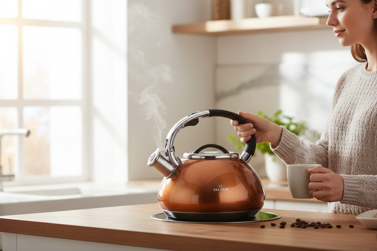 Czajnik miedziany błyszczący ZILNER ZL-5736 doskonale wkomponuje się w tradycyjnie, jak również nowocześnie urządzone wnętrza kuchenne.