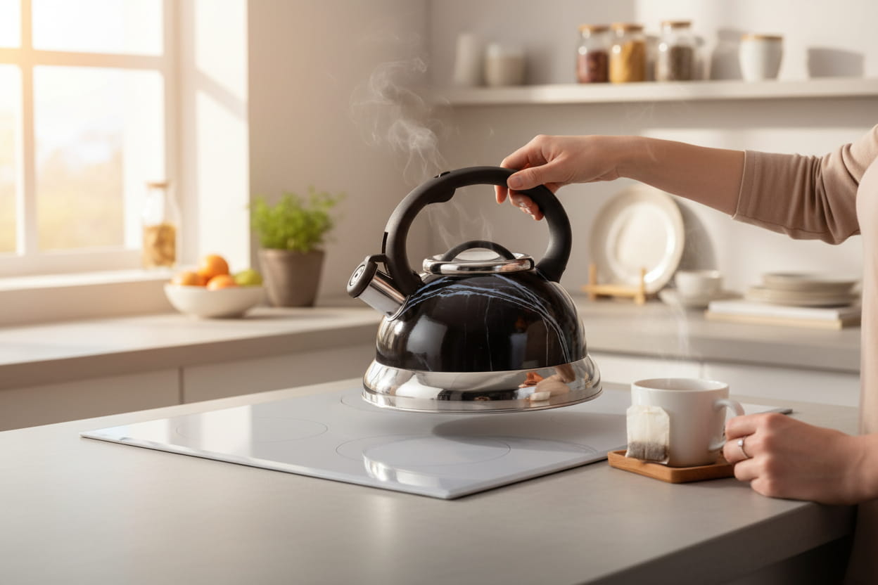 Jego zaletą jest szeroka podstawa, dzięki czemu gotowanie wody jest szybsze i energooszczędne.