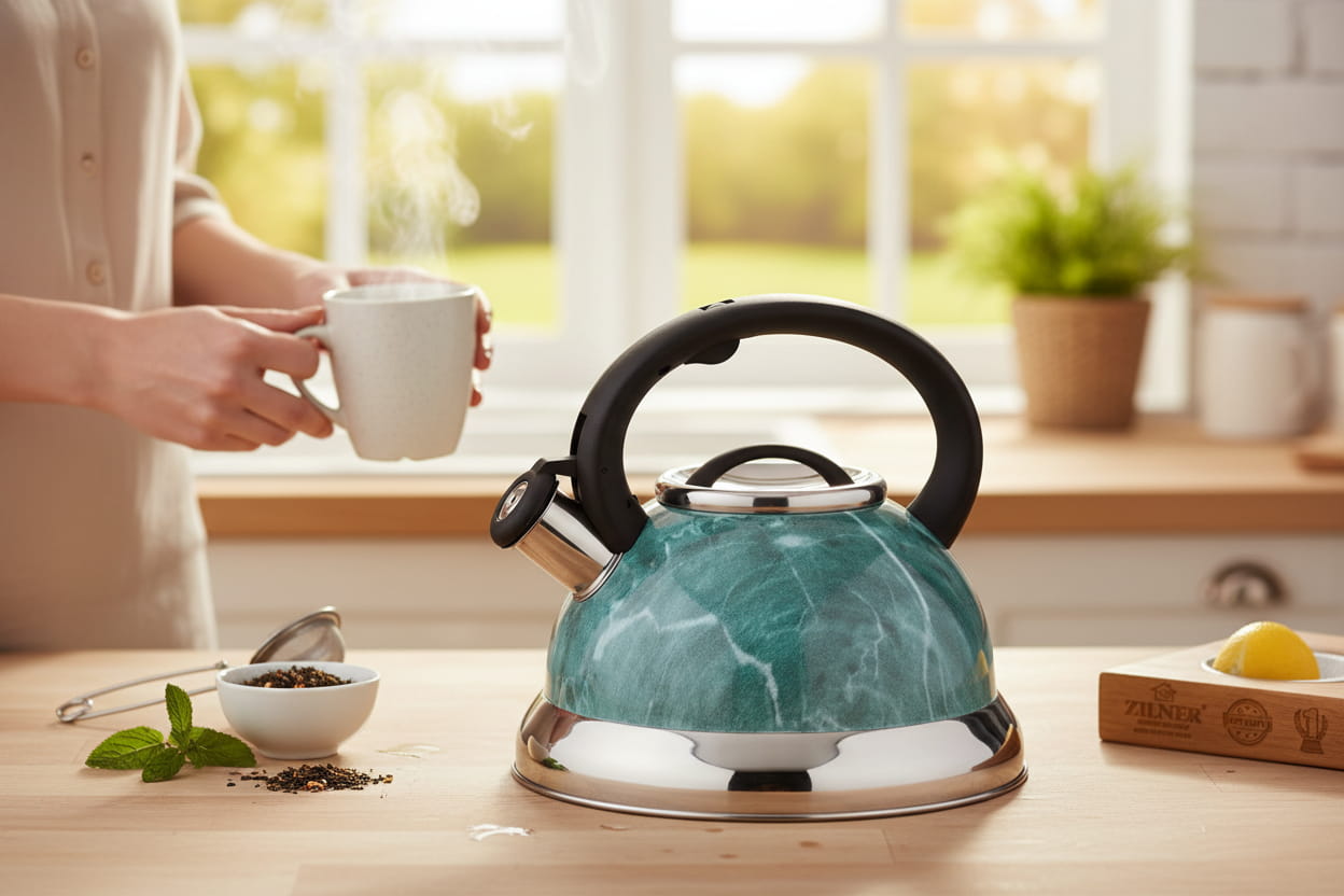 Czajnik marmurkowy morski ZILNER ZL-5731 doskonale wkomponuje się w tradycyjnie, jak również nowocześnie urządzone wnętrza kuchenne.