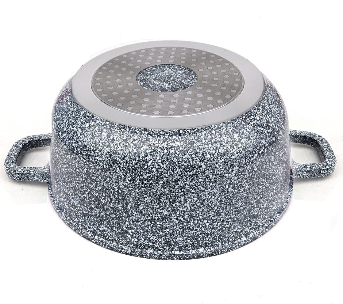Garnek ceramiczno-marmurowy ZILNER ZL-7073 jest niezwykle uniwersalnym naczyniem kuchennym, który pozwala na przyrządzanie zdrowych i pełnowartościowych potraw. Zachwyca nowoczesną formą, przemyślanym fasonem (ergonomiczne rączki, funkcjonalna pokrywa) oraz ponadczasowym kolorem (marmurowy szary). Świetnie wpisuje się w każde kuchenne wnętrze, dodając mu luksusowego charakteru oraz podnosząc jego dotychczasowy standard. Pojemny garnek ZILNER ZL-7073 wykonany jest z najwyższej jakości aluminium i pokryty powłoką ceramiczno-marmurkową odporną na korozję. Specjalna nieprzywierająca powłoka o dużej twardości oraz grube indukcyjne ferromagnetyczne dno pozwalają na gotowanie, duszenie i pieczenie potraw w szybkim czasie i sterylnych warunkach. Garnek równomiernie i wyjątkowo szybko się nagrzewa, ponadto podczas procesu gotowania nie wchodzi w reakcję z żywnością. Posiłki przygotowywane w garnku ZILNER ZL-7073 zachowują swój naturalny smak, wartości odżywcze oraz witaminy.