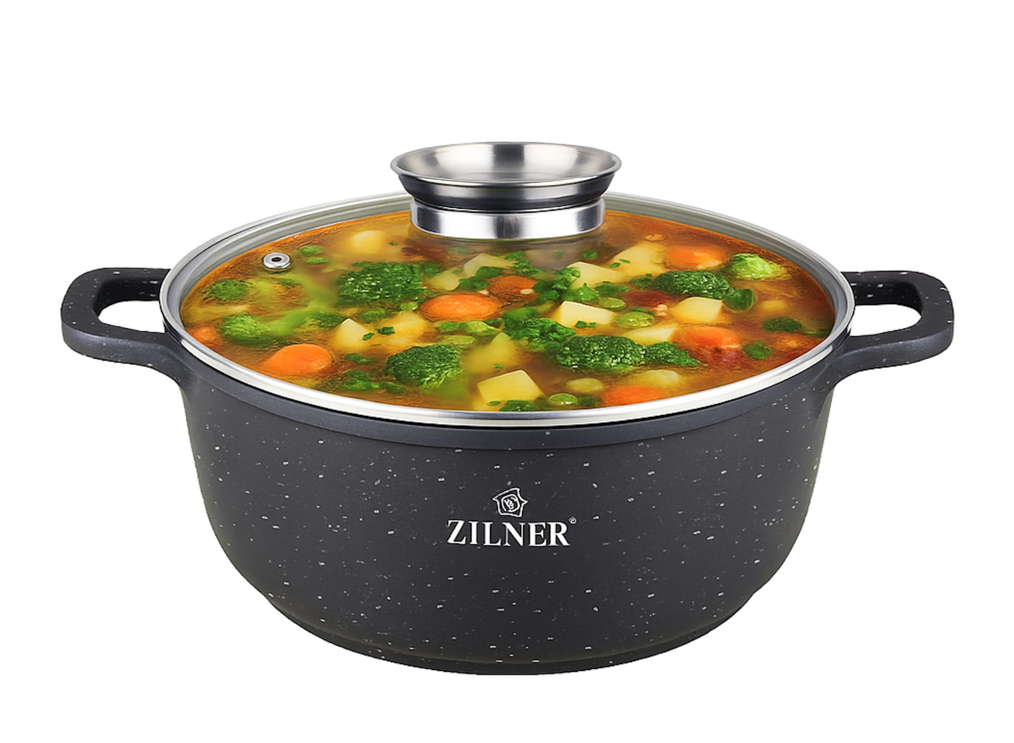 Garnek marmurowy ZILNER ZL-9003 posiada odpowiedniej średnicy pokrywę wykonaną ze szkła odpornego na działanie wysokich temperatur. Szklana pokrywa pozwala swobodnie kontrolować proces przyrządzania potrawy, a specjalny odpowietrznik umożliwia wygodne odparowanie nadmiaru wody w trakcie gotowania, duszenia lub pieczenia.