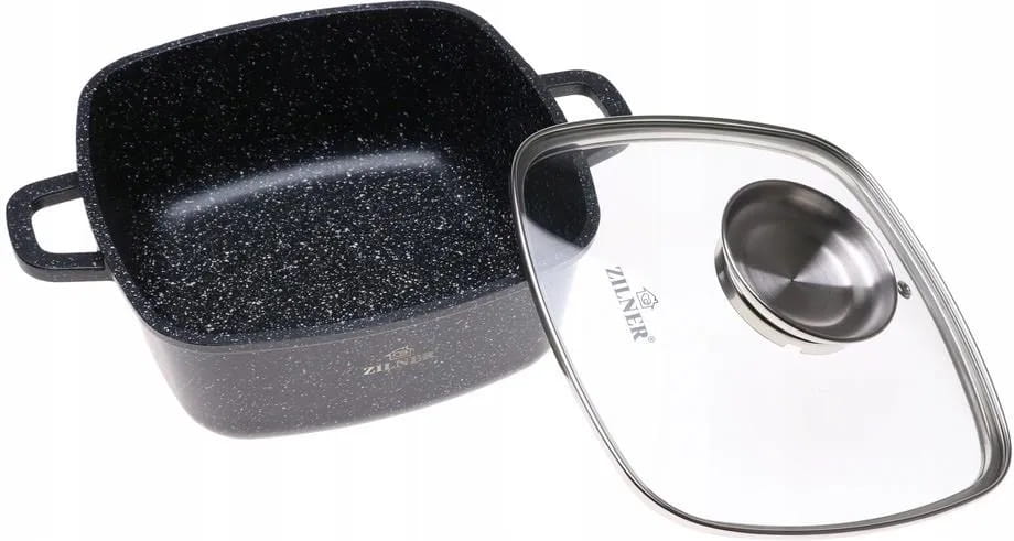 Kwadratowy garnek ZILNER ZL-9008 pozwoli Tobie nie tylko przyrządzać zdrowe i aromatyczne potrawy, doskonale odnajdzie się w kuchennym wnętrzu – doda mu oryginalnego stylu i z pewnością zaskoczy Twoich gości! Modny marmurowy kolor, nowoczesny kwadratowy kształt oraz dbałość o najmniejsze detale spełni oczekiwania najwybredniejszej gospodyni. Garnek marmurowy ZLINER ZL-9008 jest wyprodukowany z wysokiej jakości aluminium i powlekany powłoką odporną na korozję. Wyróżnia się specjalną konstrukcją dna, która zapewnia doskonałe przewodzenia ciepła i uzyskanie równomiernej temperatury na całej powierzchni. Wysokiej jakości materiały, z jakich jest stworzone naczynie odwdzięczają się wyjątkową wytrzymałością oraz niecodzienną higienicznością (spełnia właściwości antybakteryjne).