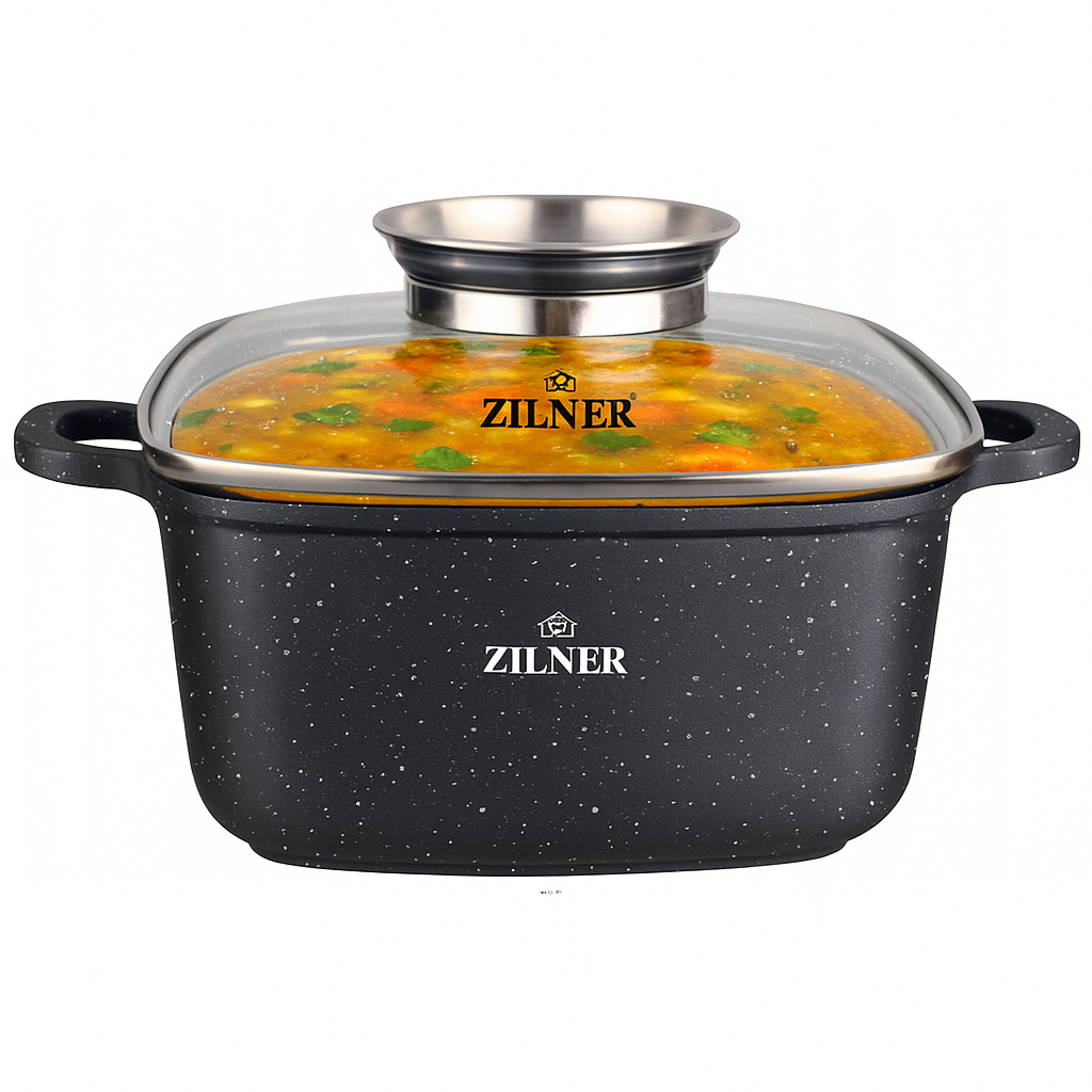 Kwadratowy garnek ZILNER ZL-9009 doceniany jest nie tylko w Polsce, ale i za granicą. Idealnie sprawdzi się w formie prezentu, ponieważ nadaje się do używania na wszystkich rodzajach kuchenek. Naczynie ZILNER ZL-9009 pozwoli zmienić niezdrowe nawyki żywieniowe dla Ciebie i Twoich bliskich, urozmaici codzienne kucharzenie, a także wzbogaci wystrój kuchennego wnętrza!