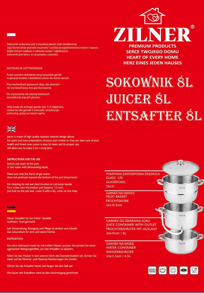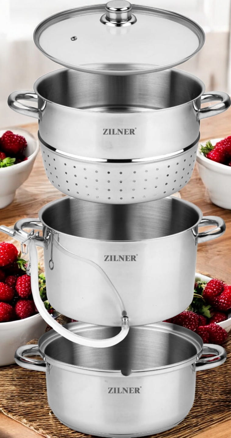 Jeśli szukasz solidnie wykonanej konstrukcji 8 l, która dobrze sprawdzi się zarówno z owocami, jak i w parowarze, model Zilner to sensowny wybór – ma mocne dno, całkiem kompletne wyposażenie i jest bezpieczny na każdą kuchenkę.