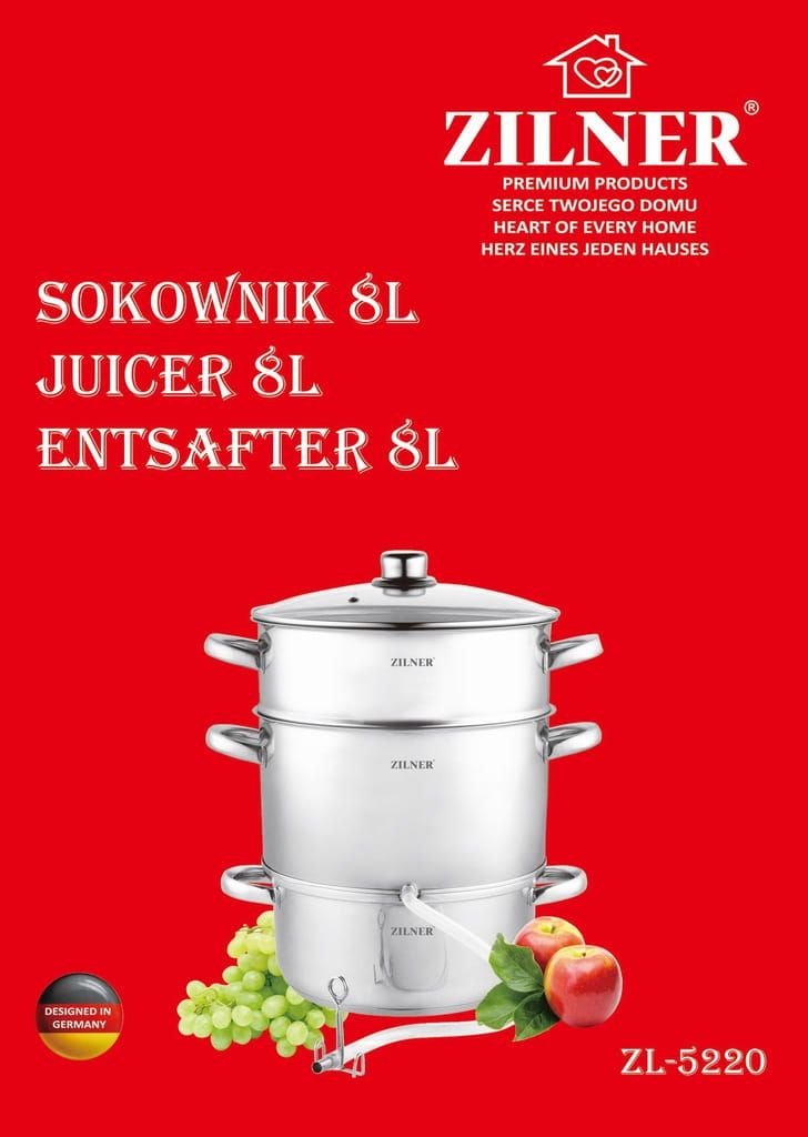 - Sokownik jest łatwy w utrzymaniu czystości, a jego właściwe użytkowanie pozwoli Ci cieszyć się nim przez długi czas.