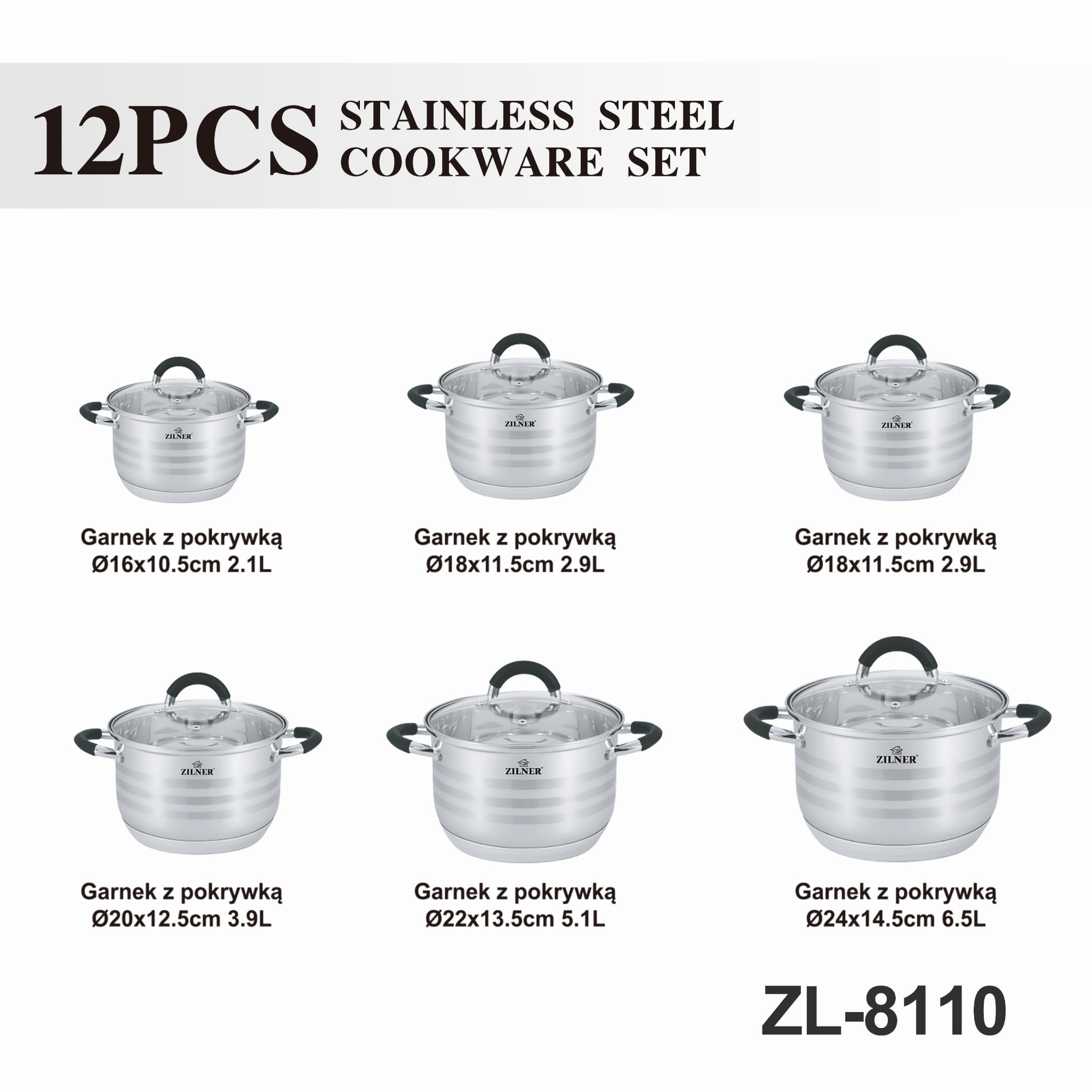 Zestaw 12-częściowy stalowy garnki ZILNER PREMIUM ZL-8110