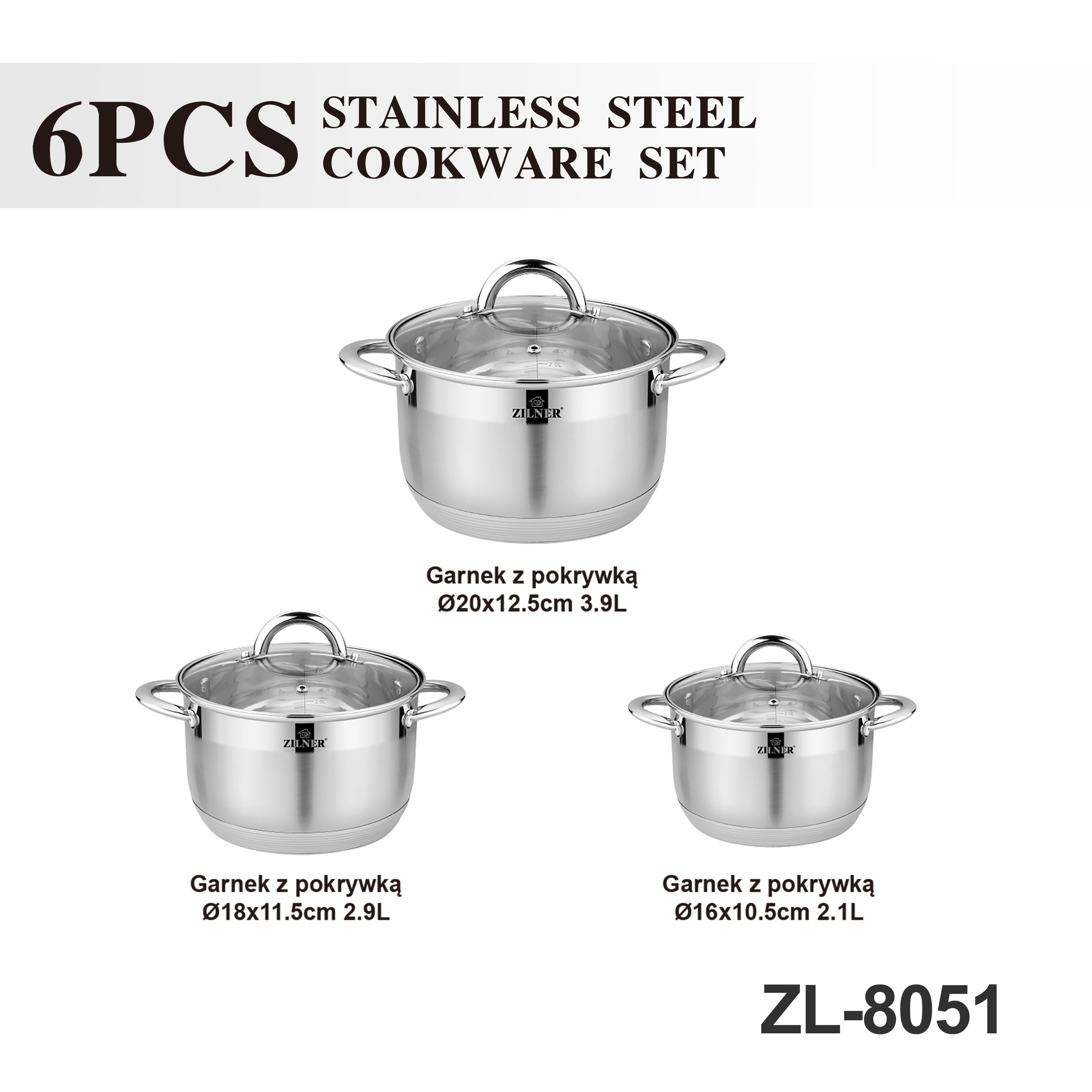 Zestaw 6-częściowy garnki stalowe ZL-8051