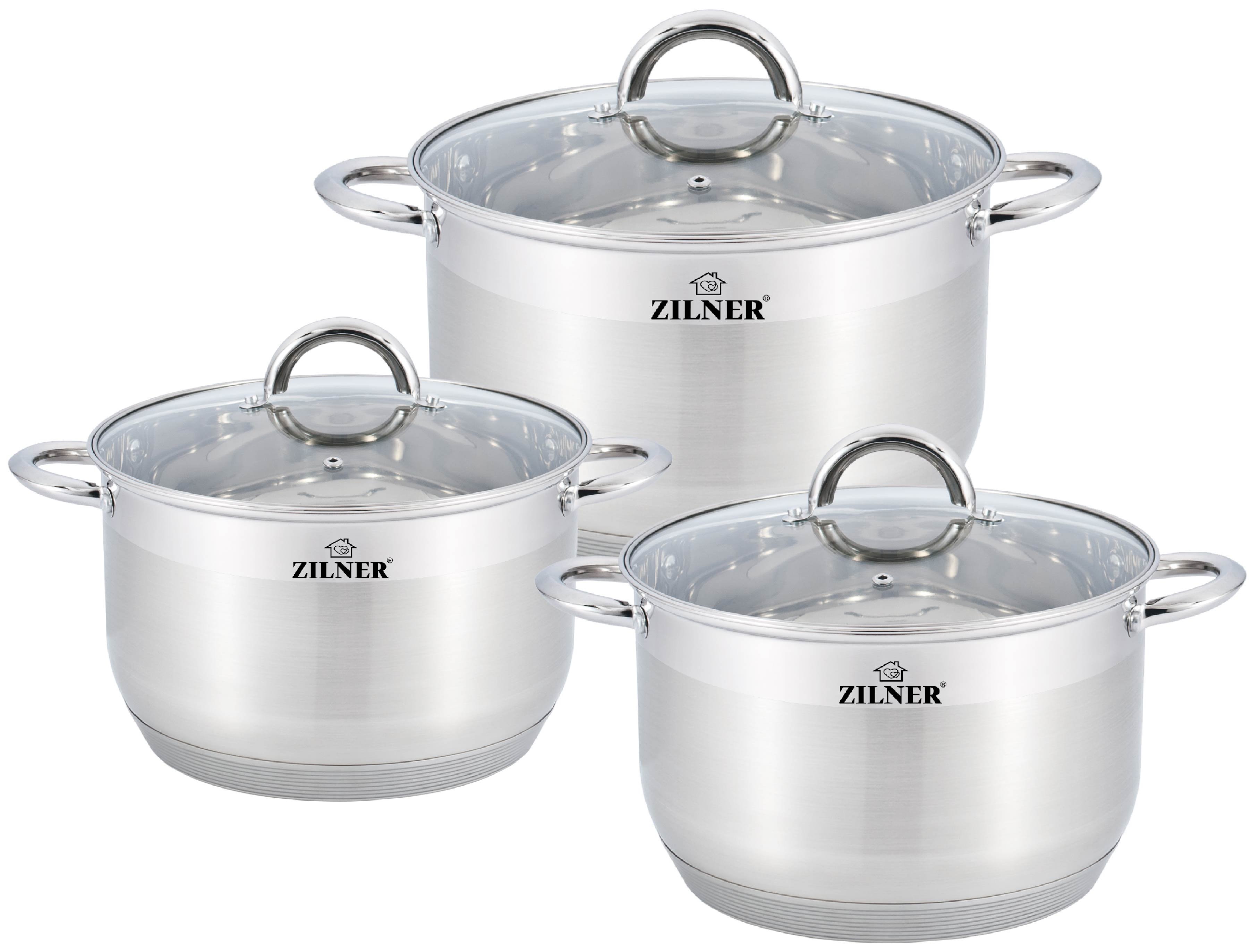 Zestaw 6-częściowy ZILNER ZL-8051 to luksusowy komplet garnków srebrnych z pokrywkami i nitowanymi uchwytami. Odznacza się nowoczesnym designem i innowacyjną technizacją, dodatkowo zapewnia maksymalne bezpieczeństwo i komfort podczas wykonywania różnorakich kuchennych czynności. Garnki wchodzące w skład zestawu ZL-8051 wykonane są z wysokiej jakości stali nierdzewnej. Dno zapewnia równomierne i szybkie rozprowadzanie ciepła. Dodatkowo właściwości antybakteryjne zapewnią zdrowe, soczyste i pełnowartościowe potrawy dla całej rodziny.