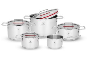 Stylowy zestaw garnków wykonanych z wysokiej jakości stali nierdzewnej to doskonały wybór do każdej nowoczesnej kuchni. Klasyczna forma połączona z dopracowanymi detalami sprawia, że garnki są nie tylko praktyczne, ale również estetyczne.